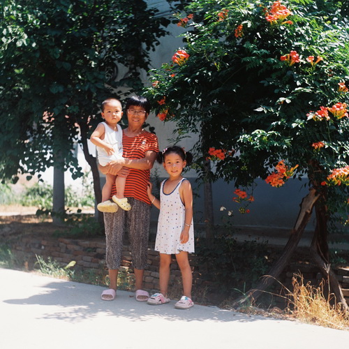 2025年7月27日,自家大门口,旁边为孙女和孙子