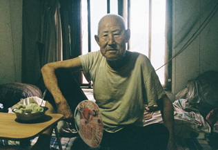 董焕胜(含着烟袋的本家爷爷) 2008年2月,董家庄 |